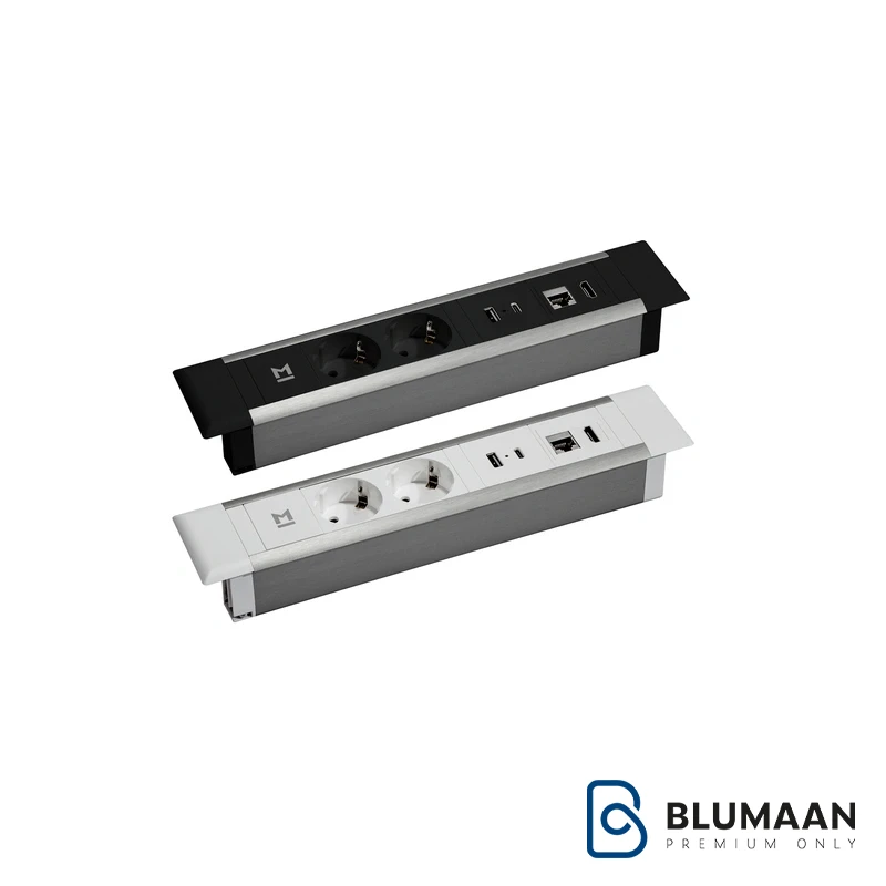 پریز توکار 10094 ملونی با ابعاد جمع و جور و طراحی مینیمالیستی، به راحتی در انواع میزها، کانترها و سطوح دیگر نصب میشود. ابعاد برش این پریز، 266mm طول و 52mm عرض و 40mm عمق است که نصب آن را آسان میکند. این محصول در دو رنگ مشکی و سفید ارائه میشود تا با دکوراسیون داخلی شما هماهنگ شود.