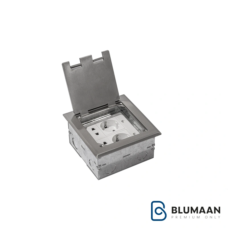 پریز کف 10118 ملونی، یک پریز توکار با طراحی مدرن و جنس استیل ضدزنگ، برای تامین برق در فضاهای مختلف.