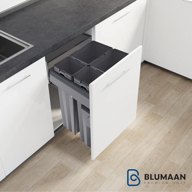 • تفکیک زباله آسان: با 4 مخزن مجزا (2x16L + 2x31L)، امکان تفکیک زباله‌های خشک و تر را فراهم می‌کند.