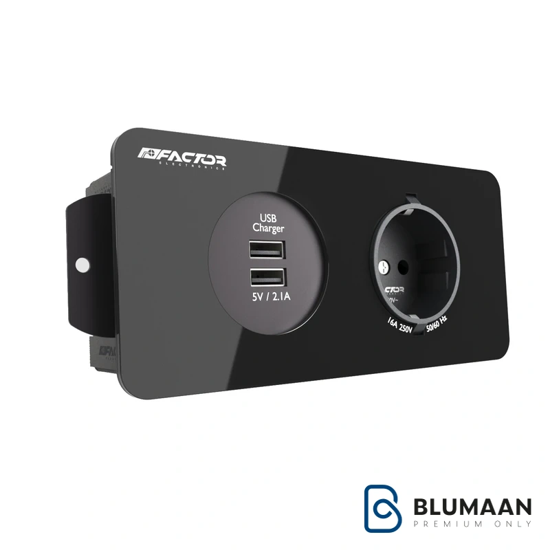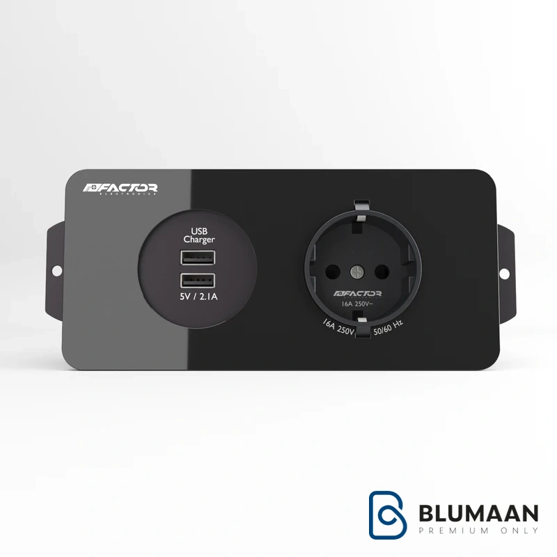 پریز برق توکار FPO2.v2 فکتور، راهحلی شیک و کاربردی برای دسترسی به برق و شارژ. دارای 1 سوکت و 2 پورت USB.