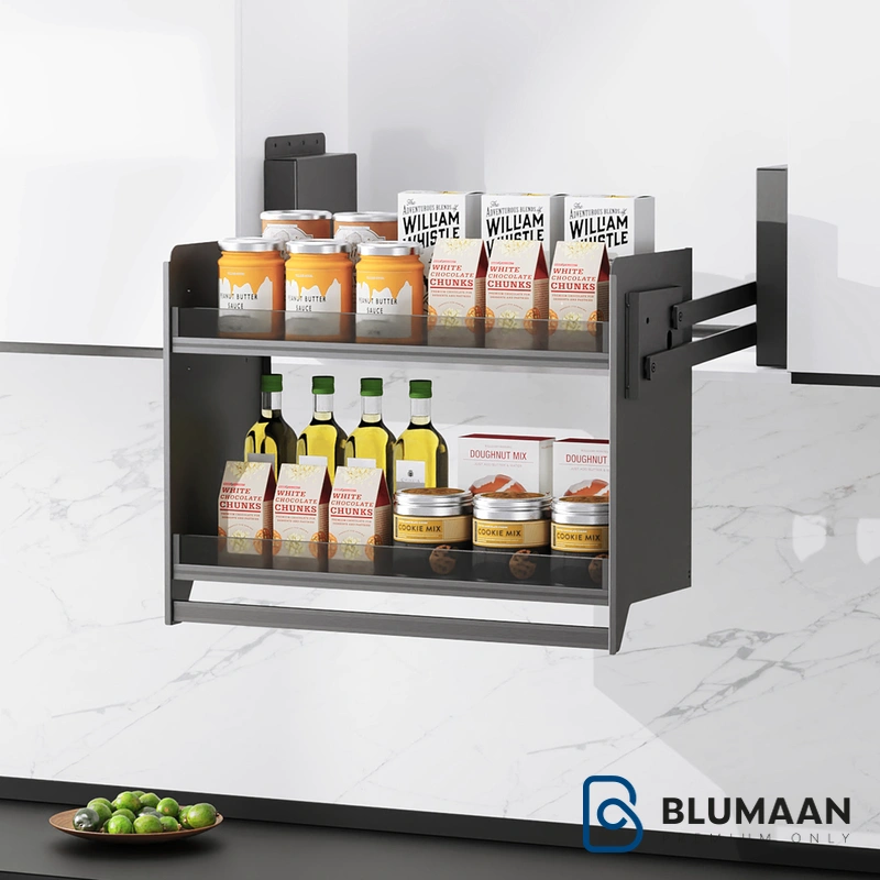 سبد آگیلیس برقی هوایی با جک آسانسوری کریستال G361 فانتونی، یک راهحل مدرن و کاربردی برای دسترسی آسان و شیک به وسایل آشپزخانه.