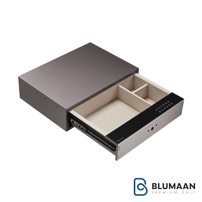 این گاوصندوق با ابعاد جمع‌وجور (عرض: 560mm، عمق: 400mm، ارتفاع: 150mm) و رنگ موکا، به راحتی در هر فضایی جای می‌گیرد و با طراحی شیک خود، جلوه‌ای مدرن به محیط شما می‌بخشد. سیستم دسترسی ترکیبی اثر انگشت و رمز دیجیتال، امنیت فوق‌العاده‌ای را فراهم می‌کند. دیگر نیازی به حمل کلیدهای سنتی و نگرانی از گم شدن آن‌ها نیست. فقط کافی است اثر انگشت خود را اسکن کنید یا رمز عبور خود را وارد نمایید.